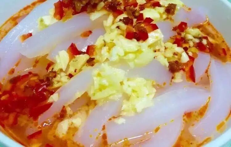 凉粉做汤也是一种不错的吃法,将葱、姜、蒜用猪油爆香,加入开水,将凉粉切条加入,撒上一撮韭菜,便是一道素食好汤。倘若凉拌和做汤吃腻了,凉粉还可以与韭菜炒着吃。食材的性格是多变的,将同一种食材变换岀不同的花式,餐桌便多姿多彩了,厨艺和思维也总是在活跃中保持良性的方向。