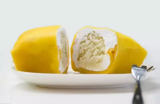 用料:低筋面粉80克 牛奶250克 鸡蛋2个 淡奶油200克 榴莲(肉)200克 植物油15毫升 白砂糖70克。