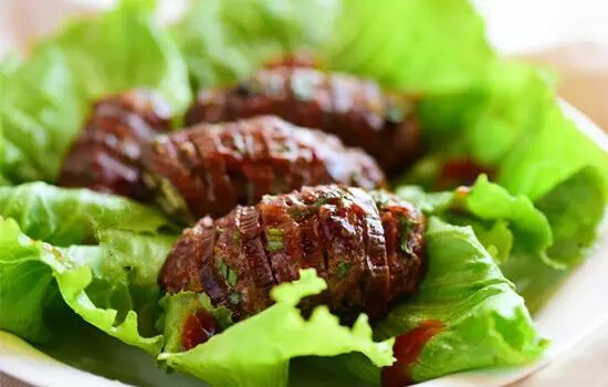 食材:茄子、猪肉馅、老抽、杭椒、生抽、生粉、橄榄油