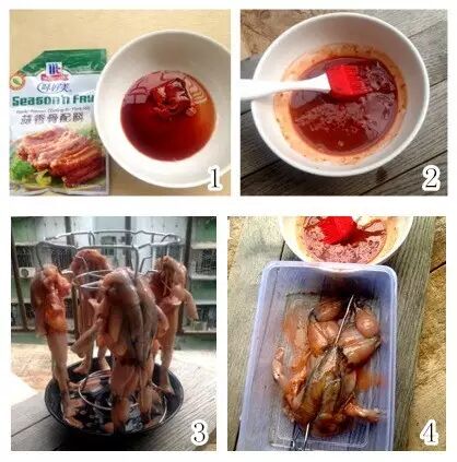 2.南乳,盐,蒜香粉,油,料酒拌成吊烧酱。