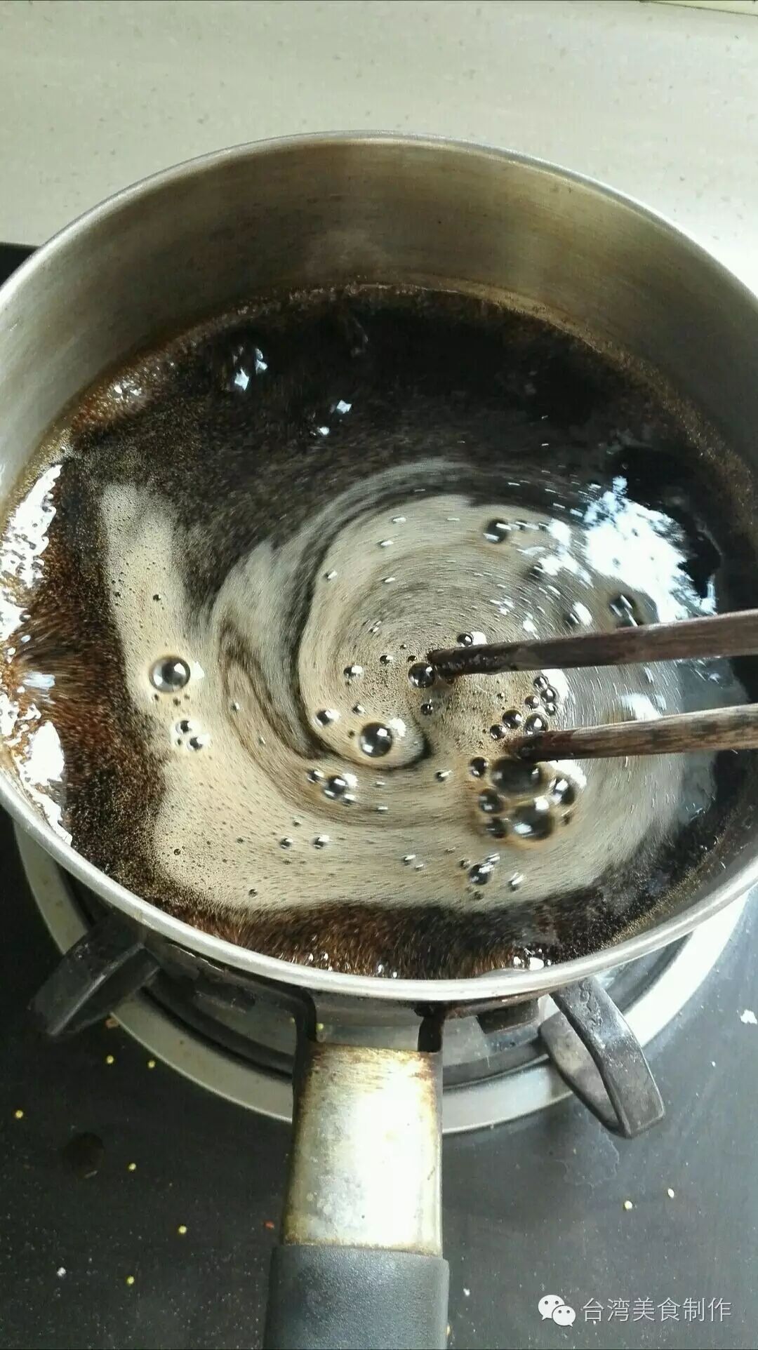4. 倒入仙草糊,不断搅拌至水滚开,两分钟后关火。