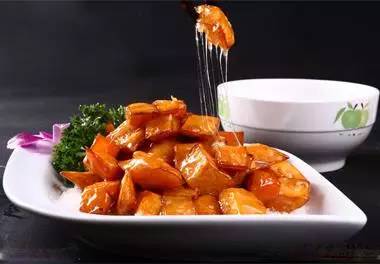 做法:红薯洗净之后切成滚刀块(边转动刀边切),在热油锅中把红薯炸熟,一般炸到外面一层脆壳捞出就可以了,在盘子上抹一层油,把炸好的地瓜捞出来放入盘中,在锅中加入适量的油,油热之后放入白糖,小火慢熬,等到糖融化冒泡之后,加入少量的醋,等到糖浆颜色从黄色变为红色,关火,把地瓜放进去,让每一块地瓜都粘上糖浆,趁热吃最好。