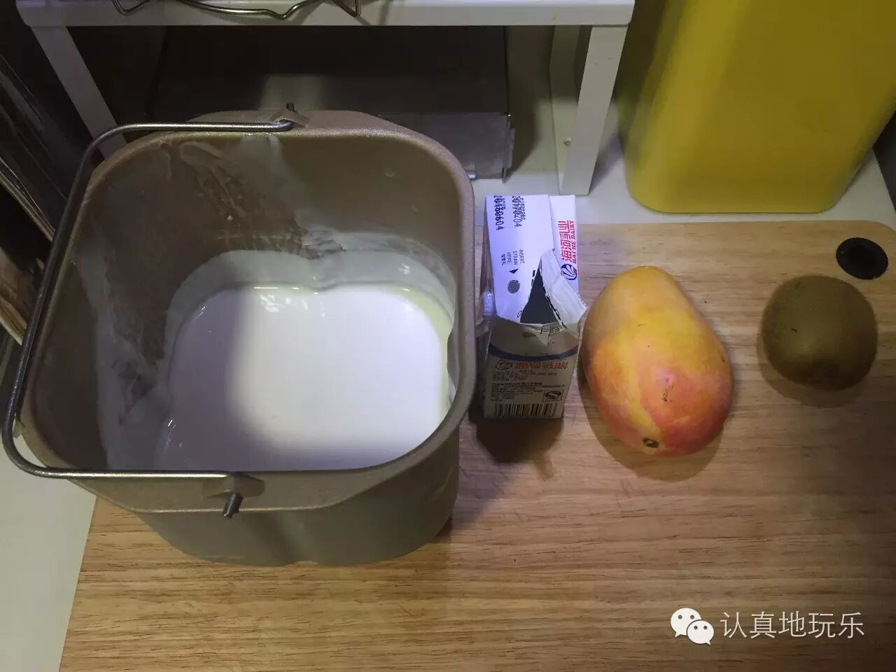 继续倒入酸奶,正放好杯子,倒满。