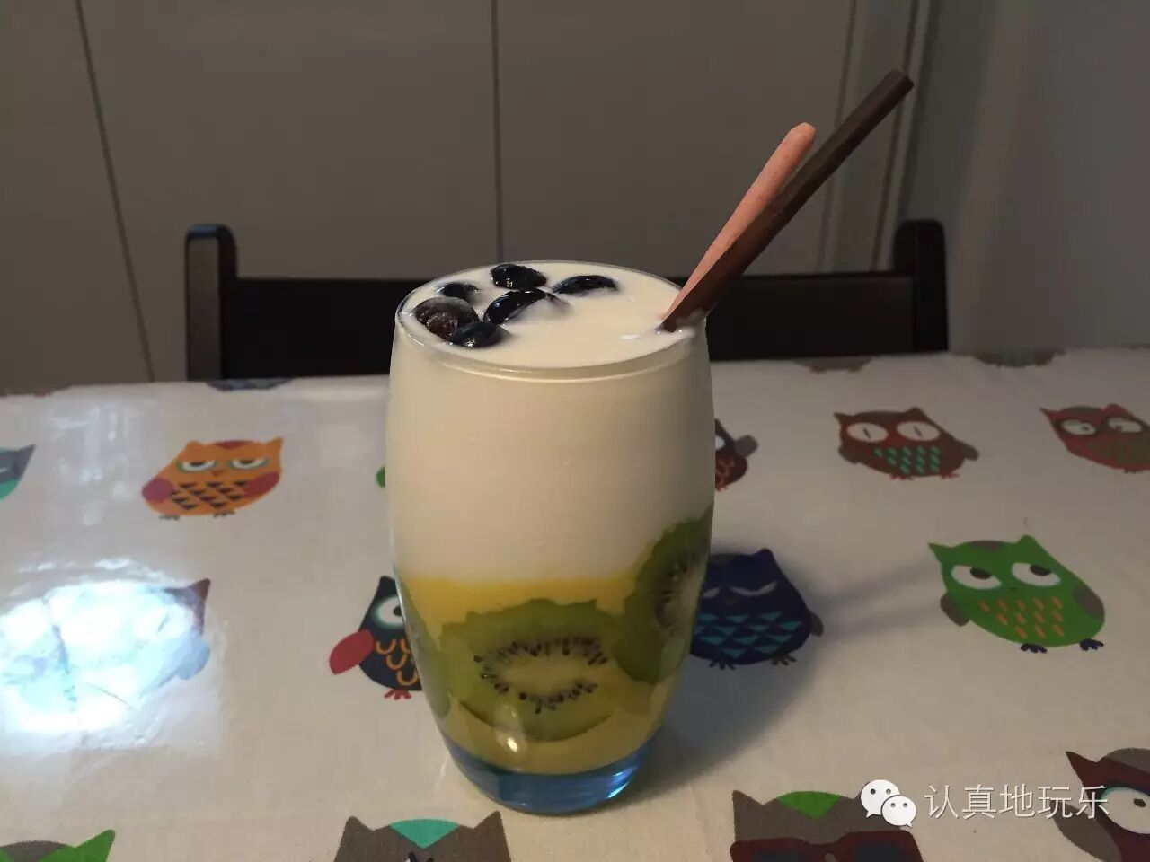 举一个麻花儿君犯过的错误吧,引以为戒,呵呵。本来是想做一个巧克力色系的思慕雪,计划着先放咖啡、再放酸奶、再放果味牛奶,结果可想而知啦,刚刚放到酸奶,酸奶就跑到巧克力下面了,再加牛奶,更是胡乱混在了一起,成了怪味儿牛奶……呃……呃……看来光想颜值还是不行啊~~