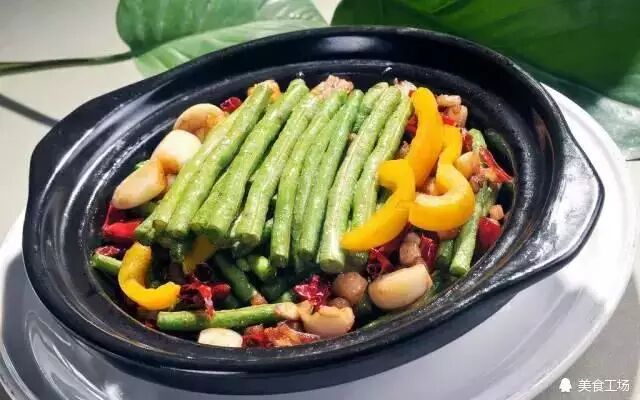 7、接着在关火前加入鸡精、香油煸炒匀均即可盛入干锅内,最后在炉内点一块酒精就可以开动啦。