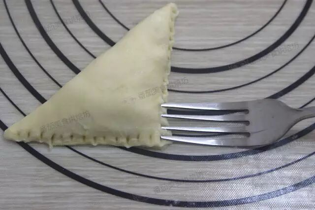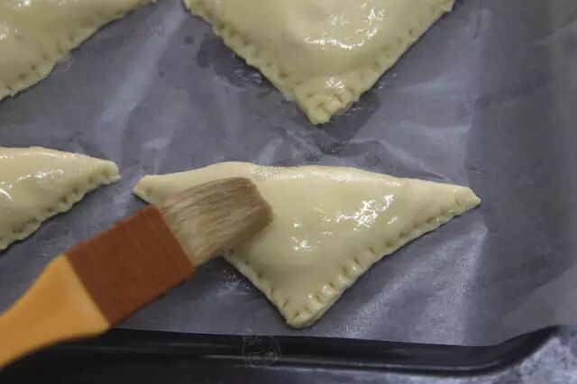 取一小块酥皮,用毛刷在四边刷上蛋液
