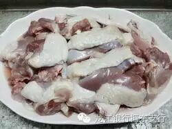 4.把鸭肉捞起,用清水冲洗干净,沥干水份