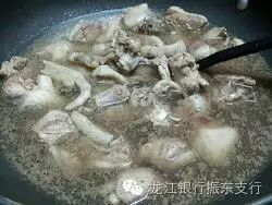 8.再倒入半瓶啤酒(我买的是玻璃瓶装的,罐装的要用一罐),大火烧开后,改小火加盖焖煮至浓汤差不多收汁
