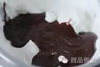 18、这时候的巧克力差不多到体温偏低一点的温度了,这时候把巧克力倒入奶油中。