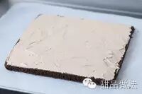 21、把奶油馅加在靠近自己这端的地方,然后用抹刀往另一端推奶油,直到涂满一整面。(奶油在靠近自己这端要厚点然后慢慢地中间涂薄一点,到最尾端只需要薄薄一层即可。)