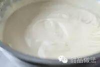 内的气泡均匀,蛋糕糊表面细腻充满光泽为止。