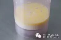 4、蛋液隔水(50度左右)加热至38°。