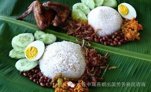 椰浆饭是用加了椰奶的米饭,配上小鱼干、水煮蛋、烤花生及小黄瓜丝,是一道很受欢迎的早餐。