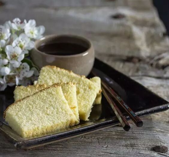 美国的名产之一。戚风蛋糕的前身是海绵蛋糕(Sponge),它是种完全靠打发蛋(全蛋或是分蛋)来形成蛋糕组织孔隙的糕点,因此典型的海绵蛋糕材料只有蛋、面粉和糖这三样。区别就在于海绵蛋糕的口感比戚风蛋糕更结实、更绵密,不过在吃的时候很容易噎着(和戚风蛋糕相较的话……)。