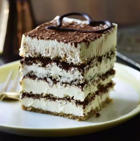 提拉米苏,一种带咖啡酒味儿的蛋糕,由鲜奶油、可可粉、巧克力、面粉制成。最上面是薄薄的一层可可粉,下面是浓浓的奶油制品,而奶油中间是类似巧克力蛋糕般的慕斯。