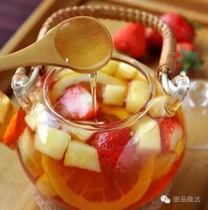 3、蜂蜜要等水果茶凉到不烫手再加,温度过高会把蜂蜜中的营养成份破坏掉。