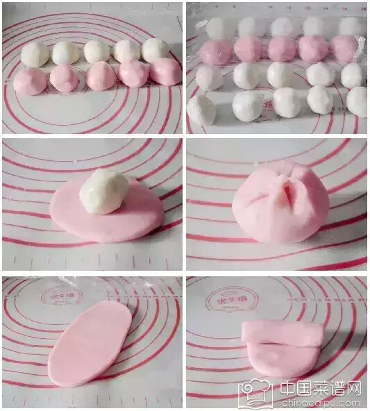7 两色面团各分成5份 【15克左右】
