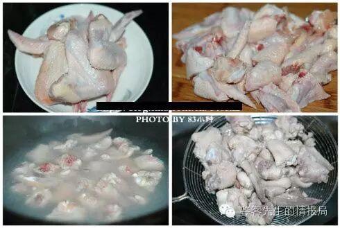 1.鸡全翅清理净残毛,清洗干净剁块。