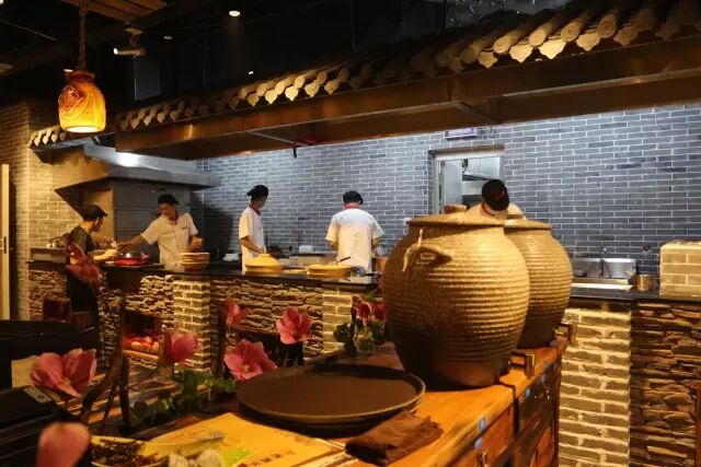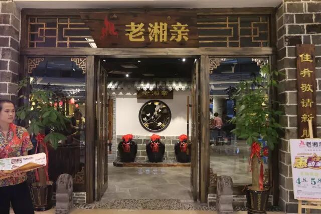 ▲暖黄色背墙、红彤彤的灯笼、红花绿植点缀、砖瓦屋檐下的坐凳,浓郁的湘情勾勒起每一位食客心中关于湖南的乡土面貌。