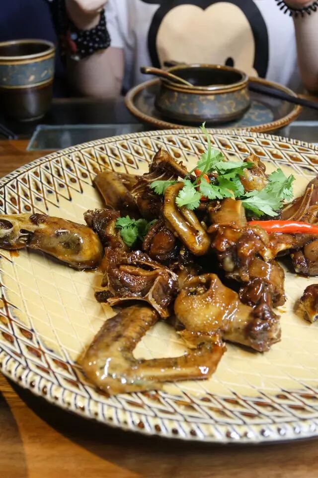 肥嫩飘香的鸭子四仰八叉地躺在盘中,油光熠熠的色泽看着十分开胃。但!千万不要被这样的表象所迷惑!!此菜巨辣无比,会吃辣的朋友一定要挑战看看!鸭肉不像平时的烤鸭那般油腻,刚入口虽然感到有一丝丝微妙的甜意,但不出五秒,便是一股浓烈的辣味在舌尖蔓延,辣得小伙伴擦汗抹泪狂喝水(¯﹃¯)!