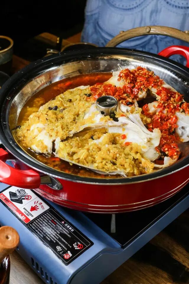 鱼头端上桌的同时,服务员便放置了一个12分钟的倒计时器,小小细节实属贴心。经过12分钟烹制的鱼头已不带任何腥味,观其外观一半炙红火热,一半酱黄清爽。两股浓烈的味道相互影响相互交融,更是凸显鱼的鲜味;鱼头下面是充分吸收两股鲜辣味道的浓汁,拌入面条更是入味。融合鱼头的“鲜”和剁椒的“辣”为一体,令人回味无穷。