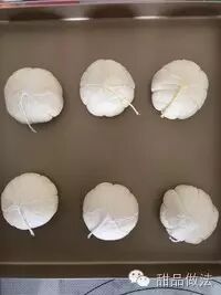 逐个把每个面团都系好以后,依次放入烤盘,中间要隔开距离。放入烤箱,开动35度发酵功能,二次发酵35-40分钟,冬天烤盘下可以放碗热水,发酵会更好。