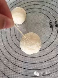 取一个面团用手掌压扁,尽量挤出里面的空气,压成巴掌大圆饼,放上豆沙馅,包好捏紧收口。