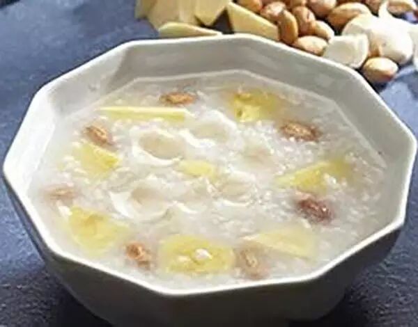 大蒜30g放入沸水中煮1分钟后捞出,再取粳米100g放入煮蒜水中煮成稀粥后,重新放入大蒜再煮一会儿食用。
