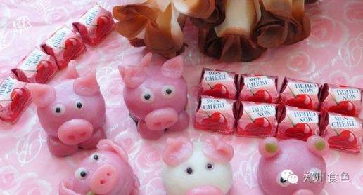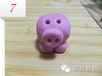 用白色的面团做出猪猪眼