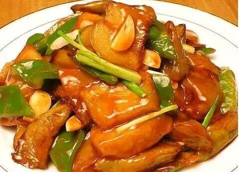 做法:先将土豆削皮,再把土豆、茄子和辣椒洗净,均切成滚刀块,大小要一致,淀粉放入碗中加适量水调匀,姜切末,蒜剁成茸,往锅内放油,烧热,把茄子、土豆炸熟至金黄色后捞起,沥油,锅内留少许底油,放入辣椒、姜末拌炒,再往锅中倒入茄子、土豆和其他调味料,出锅前放蒜茸,淋入淀粉,勾芡盛起即可。
