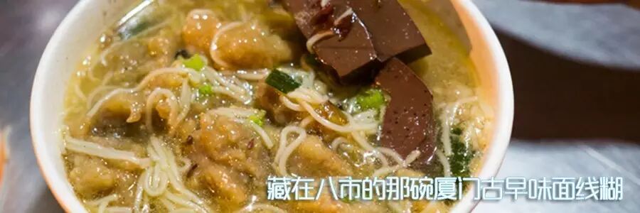 在豆仔尾路上有家超不起眼的面线糊,很多食客可是他家十几年的老主顾了,附近的老厦门肯定都知道他。而且他家早早开门,不仅有卖面线糊还有白粥,十二点就收摊啦。要是去晚了很多料就没了。据说还是一些本地大厨的心头好呢!
