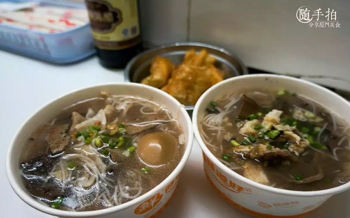 店里头位子较小较拥挤,屋外也可以打小桌子坐。清早在路边,吃着面线糊,看着人来人往,听着邻桌用厦门话唠着家常事。再也没有比这个更市井更舒服的了。