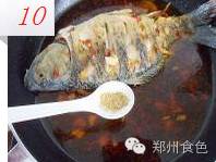 汤汁烧开后转中小火,把煎炸好的鱼放入,再加入适量十三香。