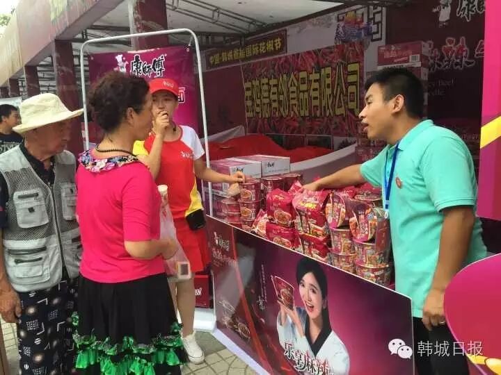 本报讯(韩城日报记者 程晗)8月13日,中国·韩城首届国际花椒节开幕,位于禹甸园东侧企业展区的麻辣食品创新大赛同时拉开帷幕,辣子条、麻辣花生、麻辣方便面、麻辣薯条、麻辣雪糕、花椒芽菜、麻辣面筋等各类麻辣食品琳琅满目,吸引了众多群众前来品尝和了解。