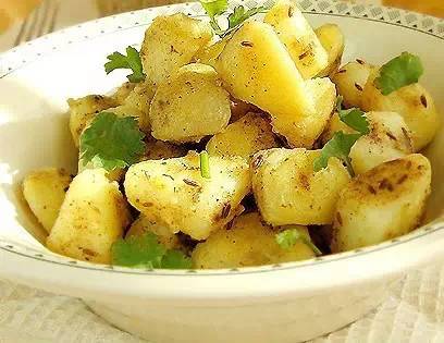 8,锅中倒入少许油,烧热后放入孜然粒,煎炒出香味后放入土豆块。