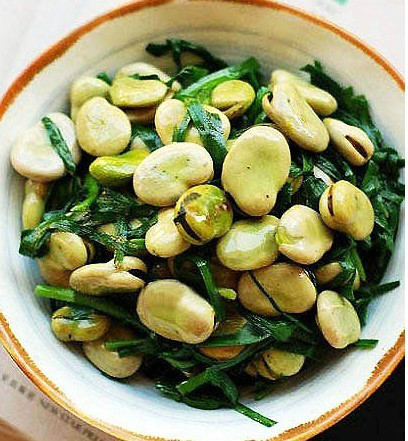 带皮蚕豆250克(指剥去豆荚但保留豆子种皮的那种蚕豆)、韭菜200克