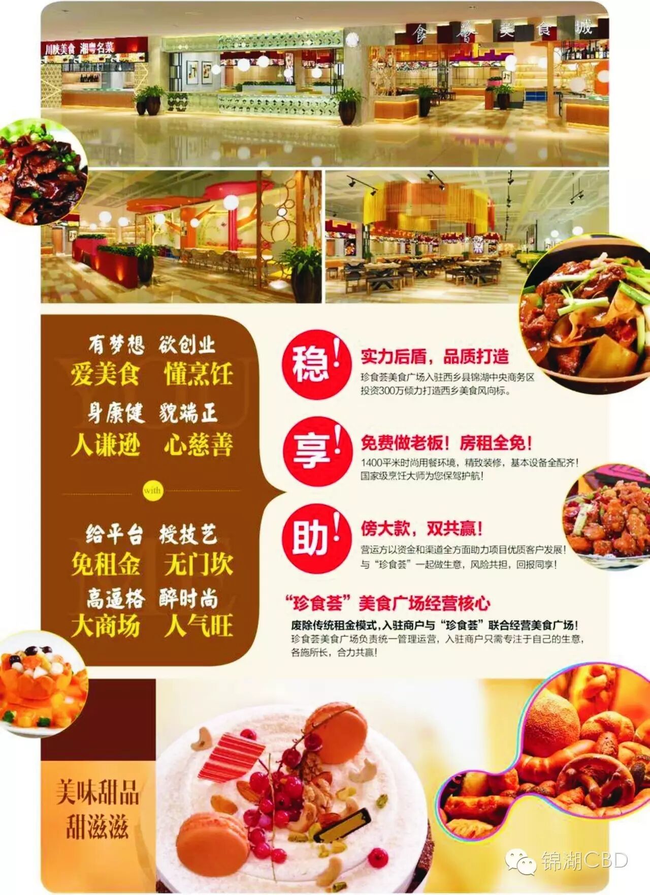 作为西乡首家美食广场强势入驻锦湖中央商务区,“珍食荟“美食广场在西乡美食领域的开篇之作,将于今年下半年与广大顾客见面。