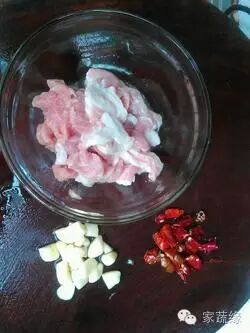 4.把猪肉切片,干椒切段,蒜子一瓣切三、四节