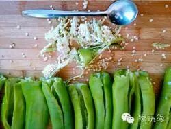 5.腌好的黄瓜把水挤干净,一层黄瓜一层姜蒜尖椒码好