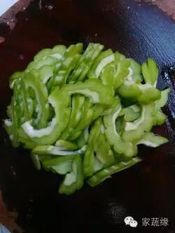 1.苦瓜洗净,对半剖开,去除里面的籽