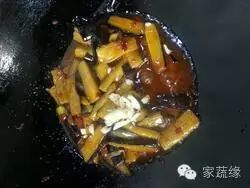 7.继续翻炒,或盖上锅盖闷一会。至其水分基本出来。加入豆瓣酱。