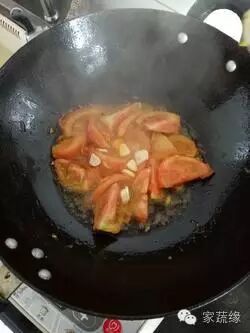 3.倒入适量的油,至油微微开放入西红柿翻炒。
