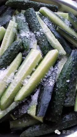 菜谱小贴士:黄瓜不要洗,用盐腌完以后会出很多水,直接洗还消毒了,如果有生水黄瓜在腌制过程中会烂,腌好的黄瓜随吃随去,用无油无水的筷子夹出来。