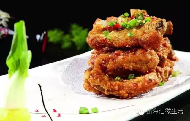 4. 炸好的排骨控油捞出。表面撒上椒盐和葱花即可食用。