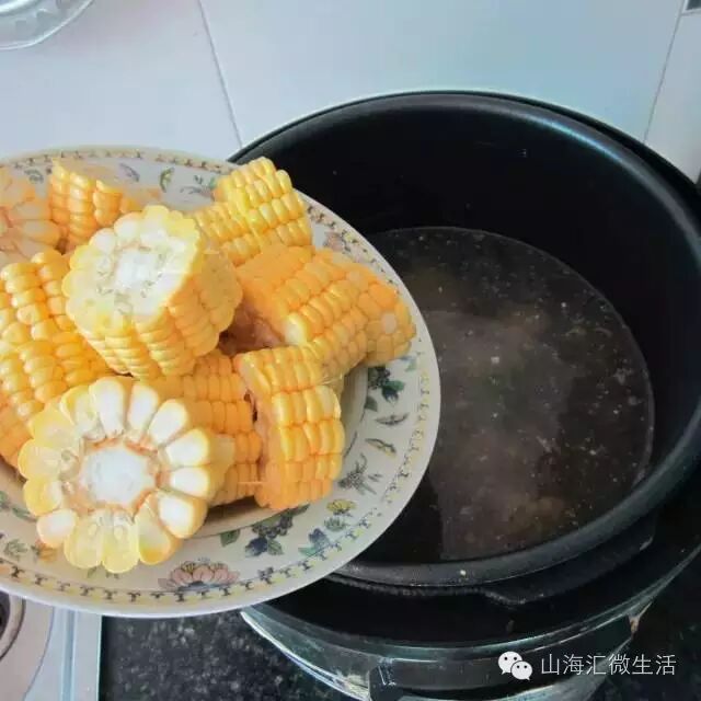 1.排骨洗净,放入开水锅中焯一下,捞出洗净。姜切片,葱切段备用。玉米切块备用。