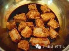 2. 用一汤匙料酒,一汤匙生抽,半汤匙老抽,二汤匙香醋(不是白醋)腌渍20分钟。
