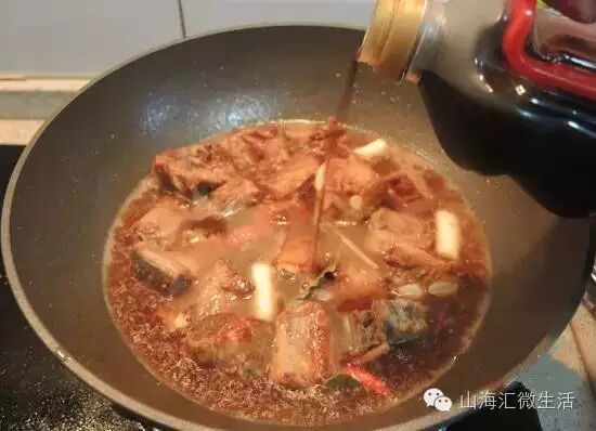 6. 加入开水,没过排骨即可(冷水易造成肉质紧缩不易入味),再加入生抽、老抽。烧开后转小火炖20~30分钟。