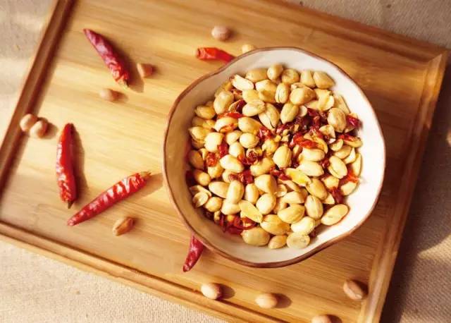 食材:花生100克,辣椒干20个,花椒2克,盐1小匙,糖1小匙。