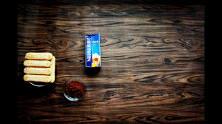 9/12 取一片手指饼干,在咖啡酒里快速蘸一下,让手指饼干沾满咖啡酒。