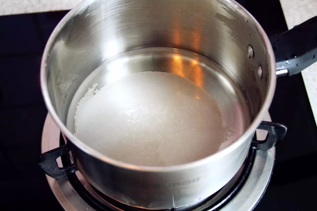 2/12 水与细砂糖煮成糖水,直到沸腾。